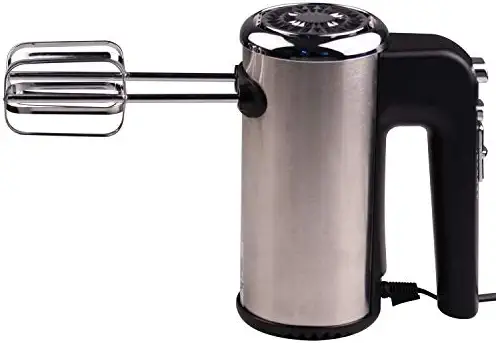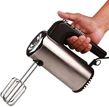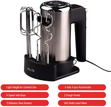 - Light Weight for Comfort Use, 5 Speed with Base, 300 Watts Hand Mixer, 2 Stainless Steel Beaters, 2 Sets 4 pcs Accessories, 2 Dough Hooks